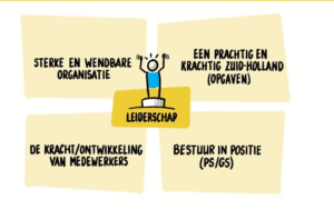 Bij alles wat we doen, kijken we of en hoe het bijdraagt aan 1 van de 4 pijlers van het kwadrantenmodel. Alles wat we doen moet hieraan bijdragen: we werken samen aan een krachtig Zuid-Holland, zorgen dat we ons bestuur in positie brengen, vormen samen een flexibele en wendbare organisatie, wat ook vraagt om professionele ontwikkeling van iedereen.